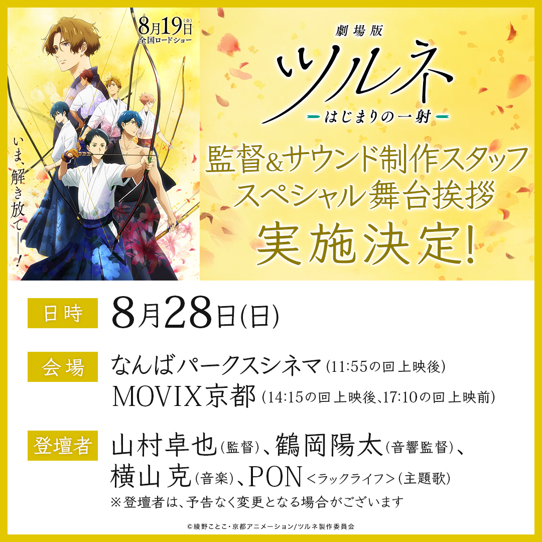 本日8月19日公開の『劇場版ツルネ -はじまりの一射-』舞台挨拶で発表に!
