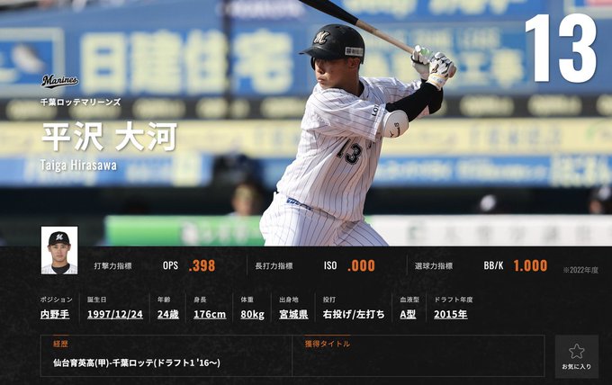 #仙台育英 高校出身✨ロッテ #平沢大河 選手🌊