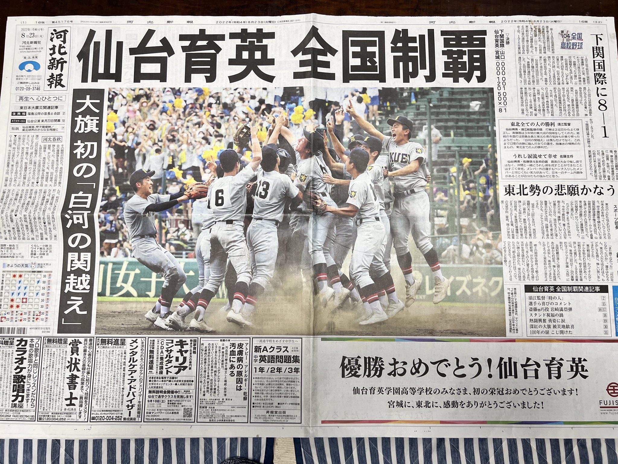 仙台育英の甲子園優勝を祝福🎉