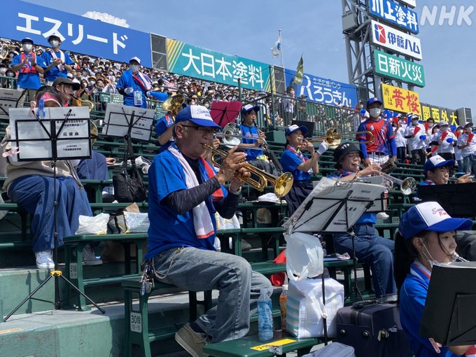 30年ほど前からトランペットで #下関国際 を応援し続ける男性がアルプス席に。部員が足りず試合が出来なかった時期から野球部を見守ってきました。「選手たちは一生懸命戦っている。心を込めて応援します」とエールを送ります。