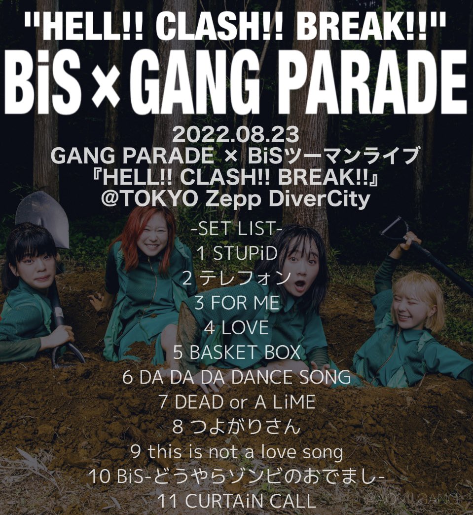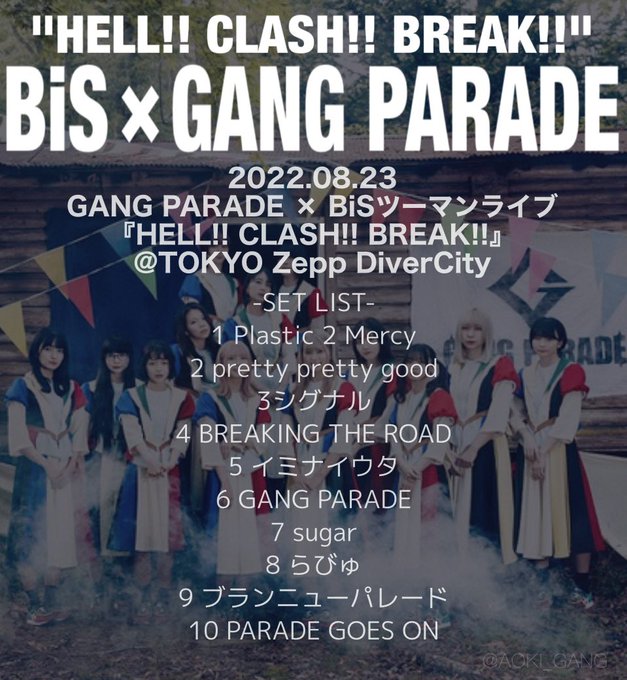 HELL!! CLASH!! BREAK!! ありがとうございました!#BiSギャン 最高でしたたのしかったー!研究員の皆様 遊び人の皆様 素敵な夜をありがとうございました twitter.com/gang_parade/st…