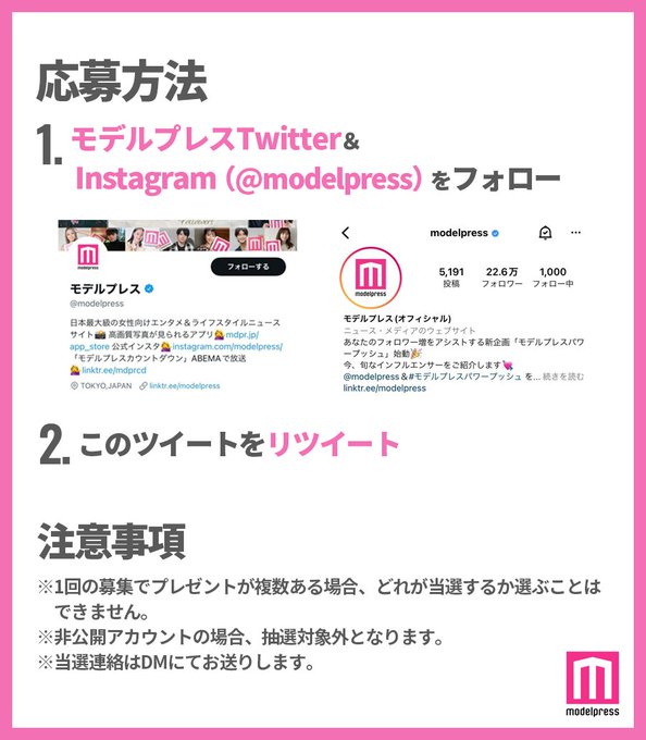 1⃣モデルプレスTwitter&Instagramをフォロー