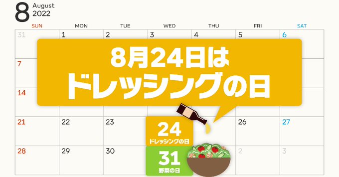 8/24は #ドレッシングの日 🥬8/31が野菜の日で、カレンダー上で8/31(野菜)の上にある日だから💫