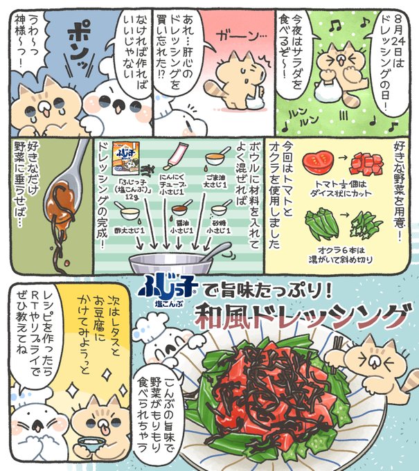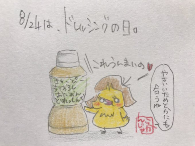 今日は #ドレッシングの日🥗ドレッシングは野菜にかけて使うので、カレンダーで8月31日「野菜の日」の真上にくる8月24日を記念日に🎶
