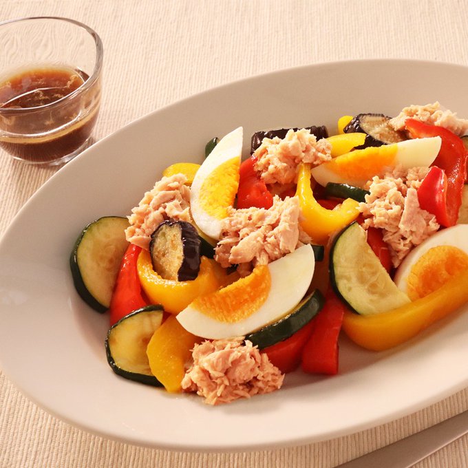 今日のレシピは簡単にできるシーチキンの油を使ったドレッシングの夏野菜サラダ✨