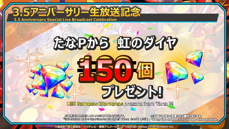 3.5周年を記念して、たなPから「虹のダイヤ×150」をプレゼント🎁✨