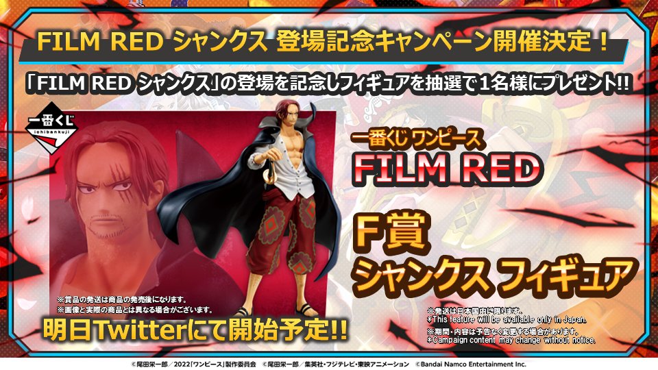 「FILM RED シャンクス」の登場を記念して抽選で1名様に「一番くじ ワンピース FILM RED シャンクス フィギュア」をプレゼント🎁