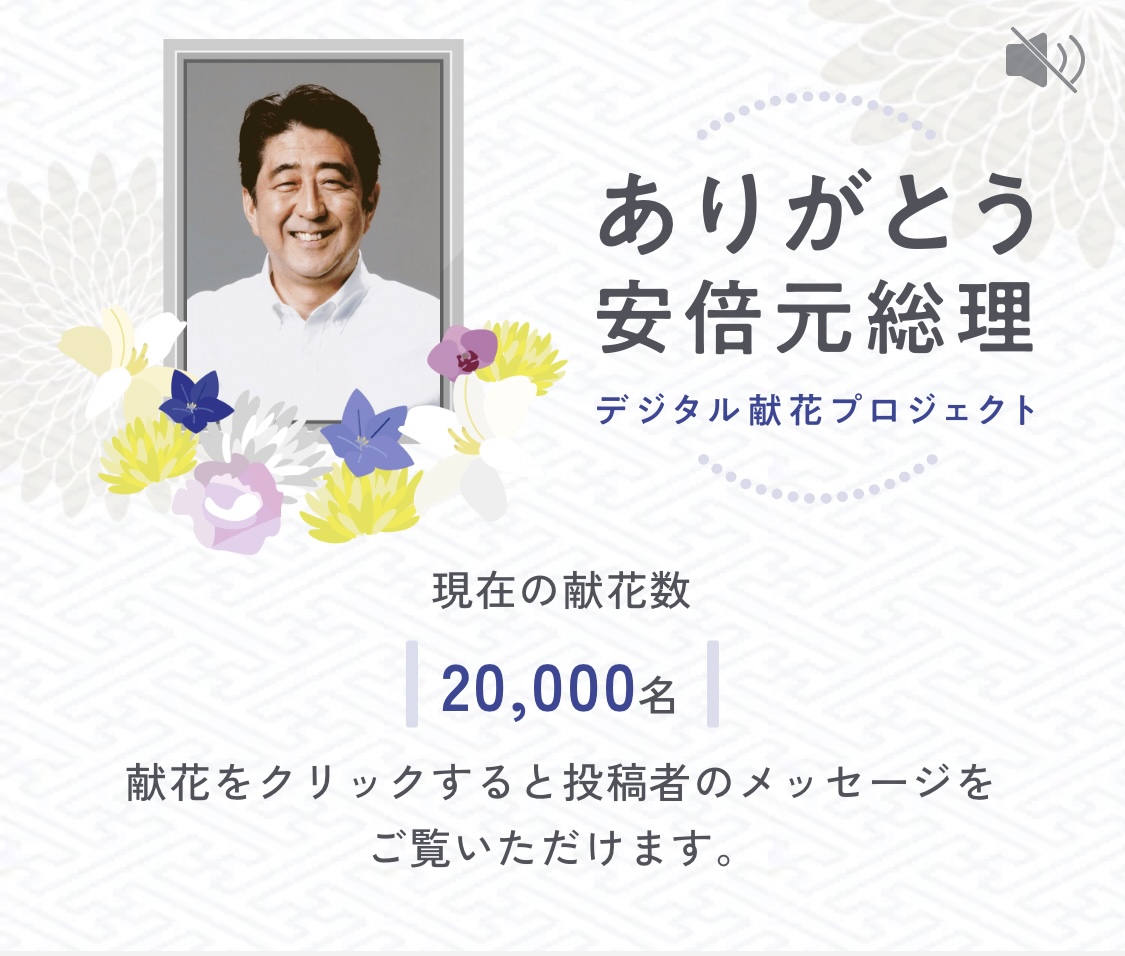 初日(8/25)だけで献花数が20,000人を超えました。アクセスしづらい中、ありがとうございます。四十九日の今日、これだけ多くの弔意と謝意で安倍さんを送ることができて、嬉しく思います。心温まるものばかりです。引き続き、国葬当日まで宜しくお願い致します。