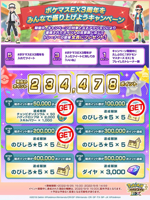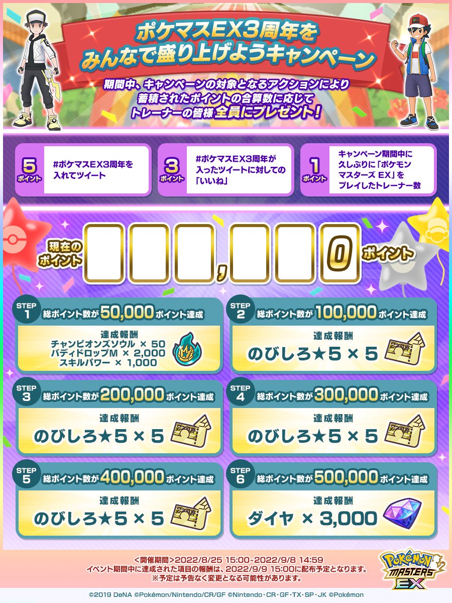 「#ポケマスEX3周年 をみんなで盛り上げようキャンペーン」のクリア状況をご報告いたします!