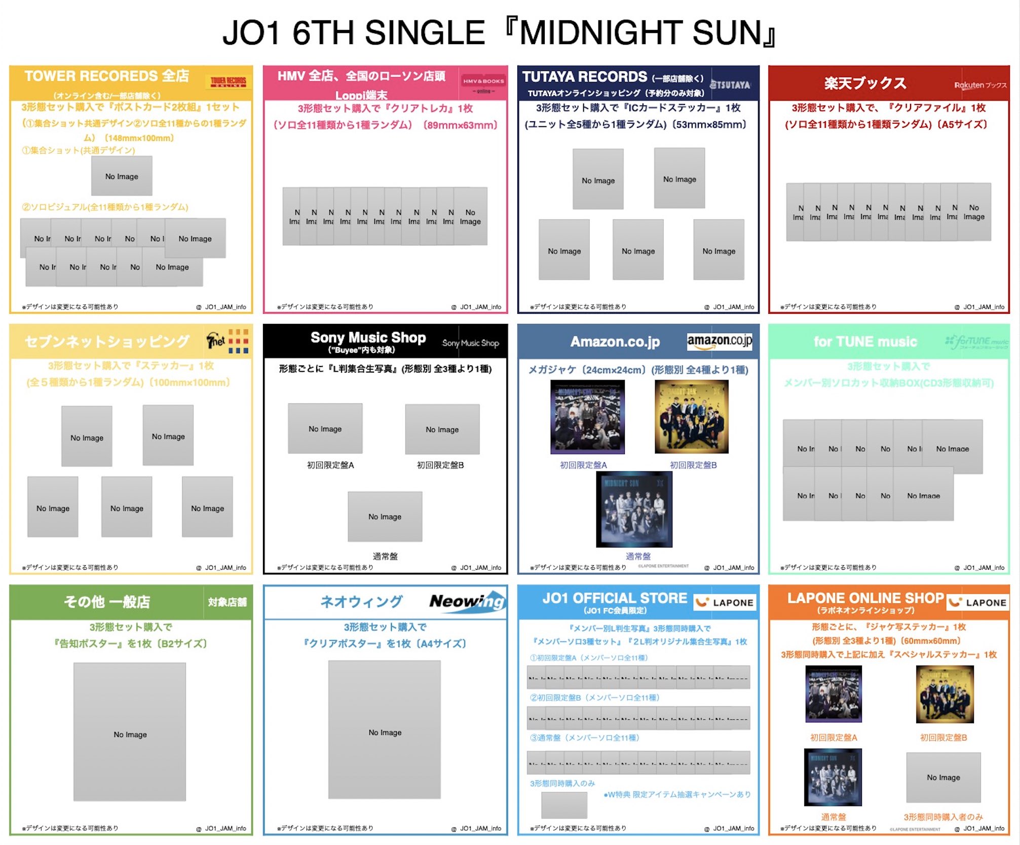 6TH SINGLE『MIDNIGHT SUN』の収録曲と封入特典、チェーン店別特典について画像にまとめました(8月26日現在)。詳細が更新され次第再度お知らせ致します。