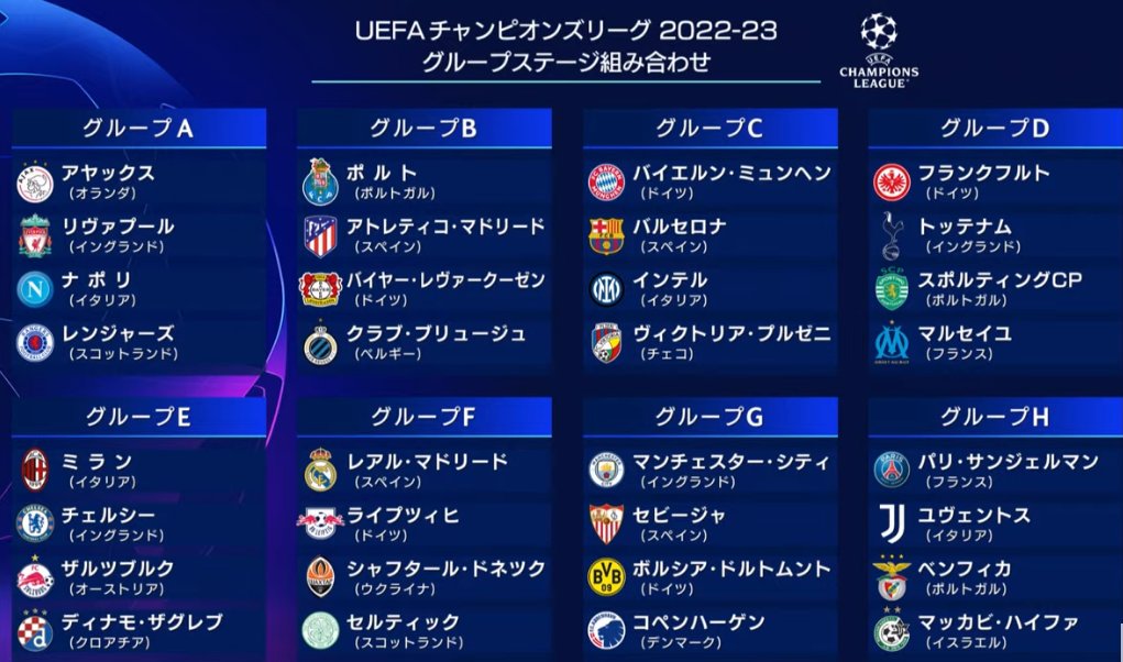 🇪🇺#UCLdraw/CLのグループステージ組み合わせ決定