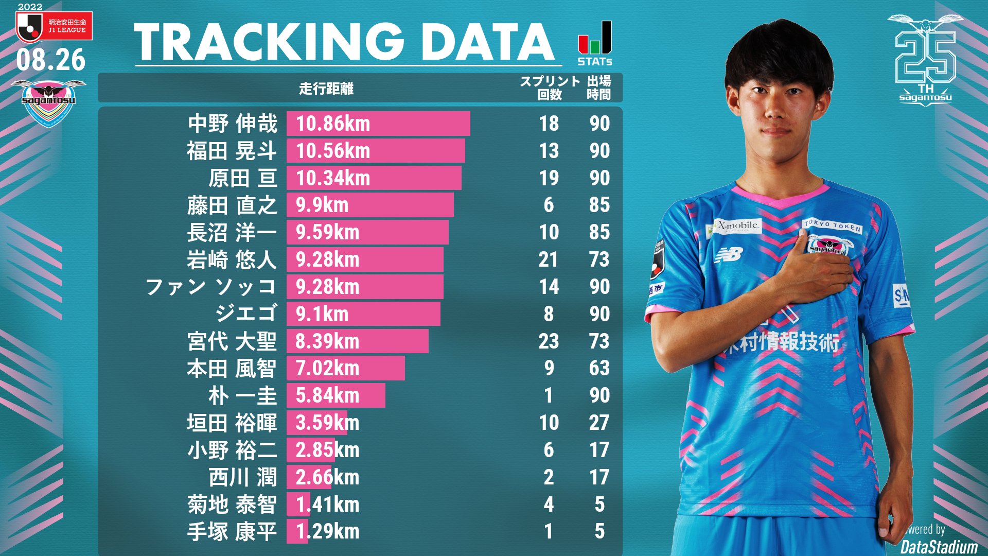 👑本日の福岡戦のトラッキングデータランキング