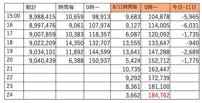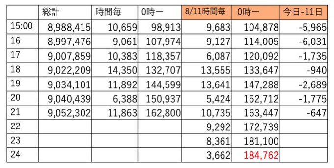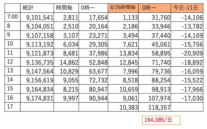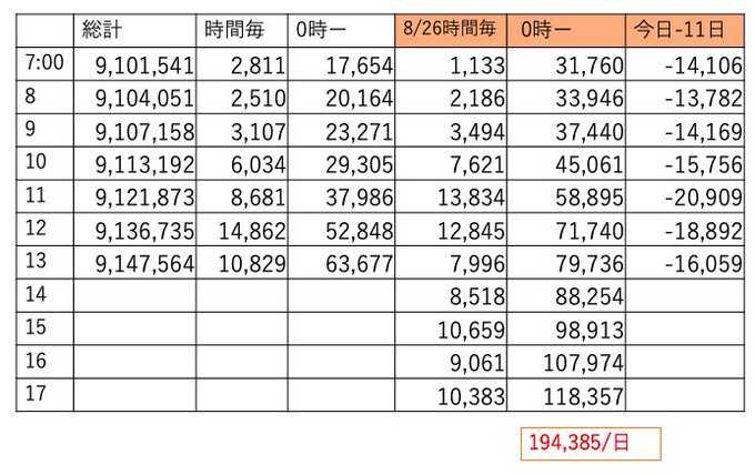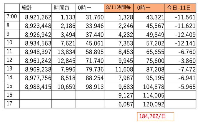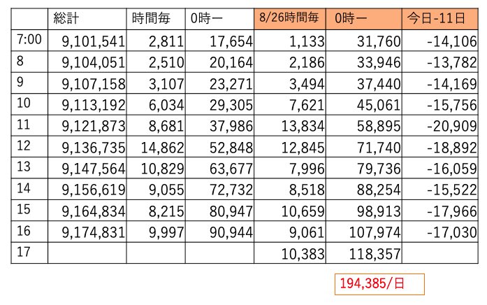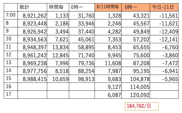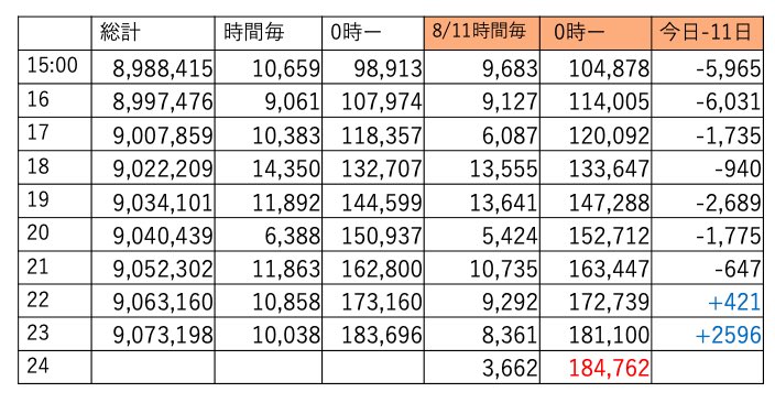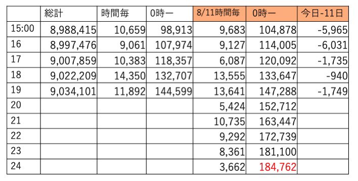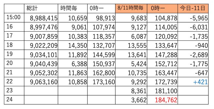 この時間帯えらくチマチマ伸びてました。あと4時間、明日は土曜、今日は伸びておかないと今後キツイです🔥