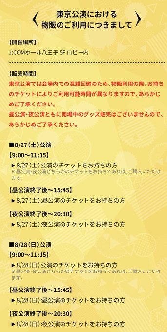 東京公演については御持ちのチケットにより、ご利用時間が異なりますのでご注意ください。