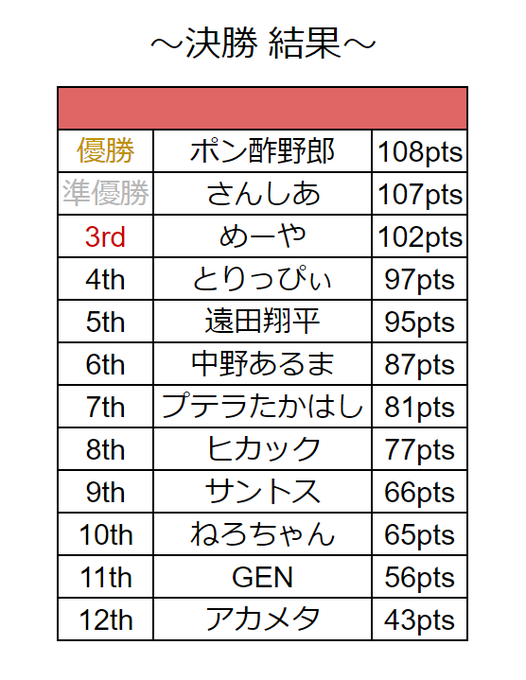 決勝は悔しい結果だったけど、できることは全てやりました!!ポン酢さんおめでとうございます!!!!