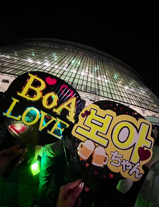 BoAさんHOPEの時、いつも真っ直ぐ行っちゃうけど何故かうちらの居る端の舞台まで来てくれて、しゃがんでうちわじっと見てくれた😭😭😭😭