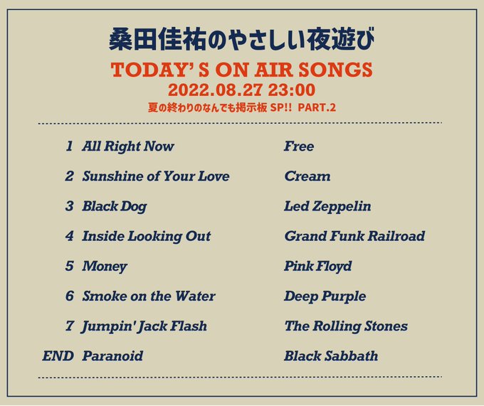 今週の「#桑田佳祐 のやさしい夜遊び」は、1960〜70年代のロック・クラシックスを特集してお届けしました‼️⚡️⚡️