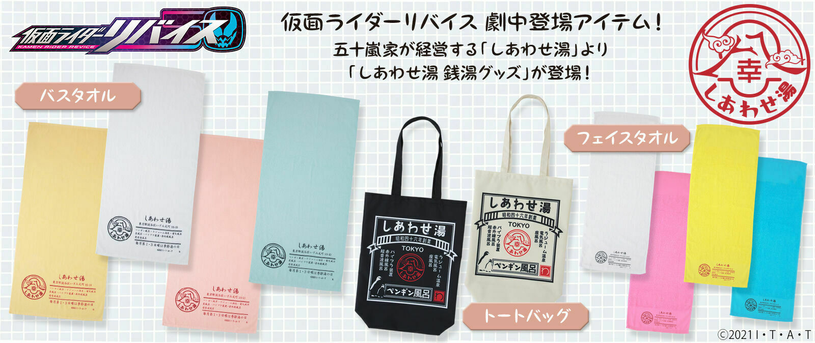 しあわせ湯関連アイテムや、特務機関FENIXの劇中衣装など