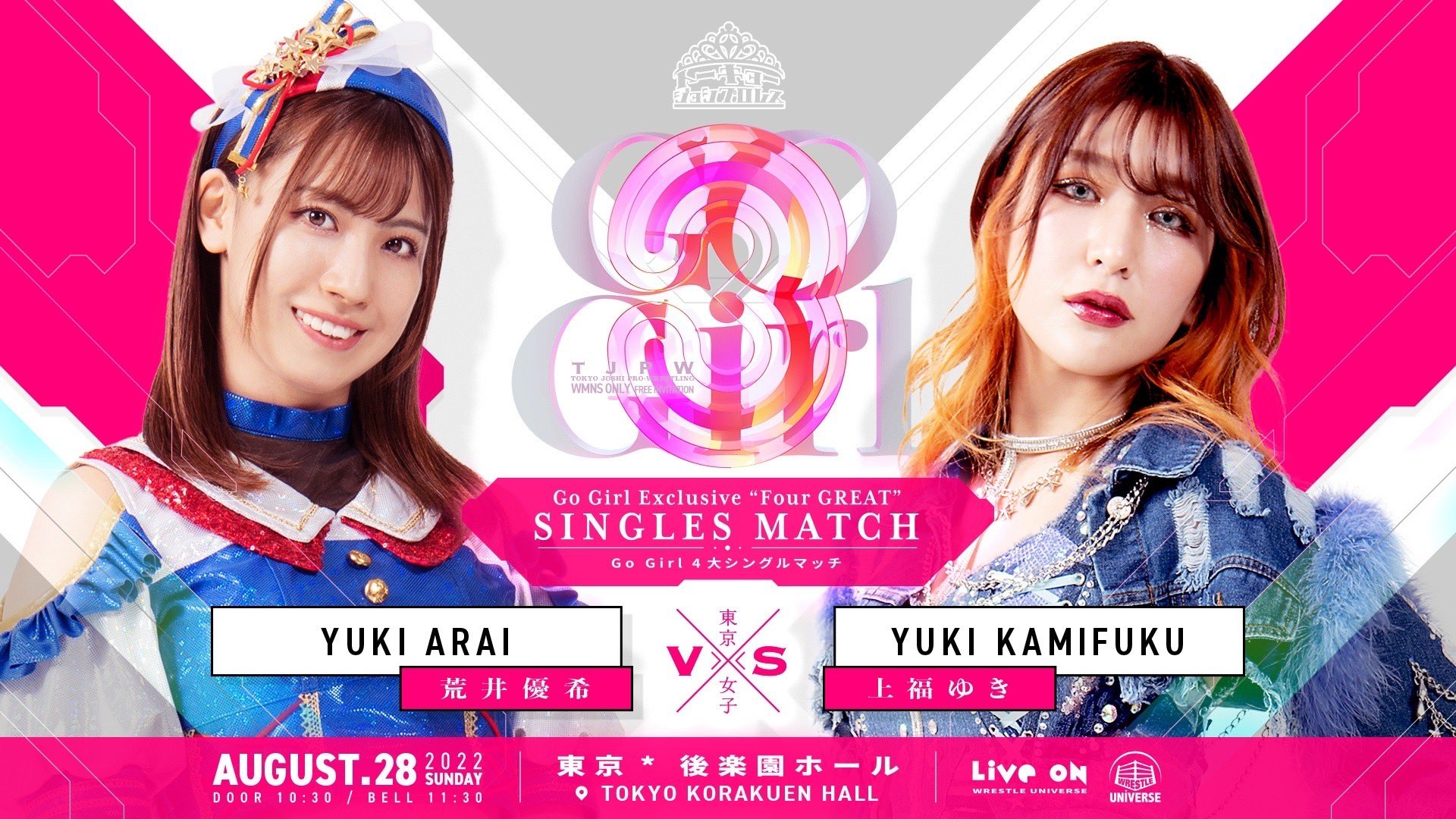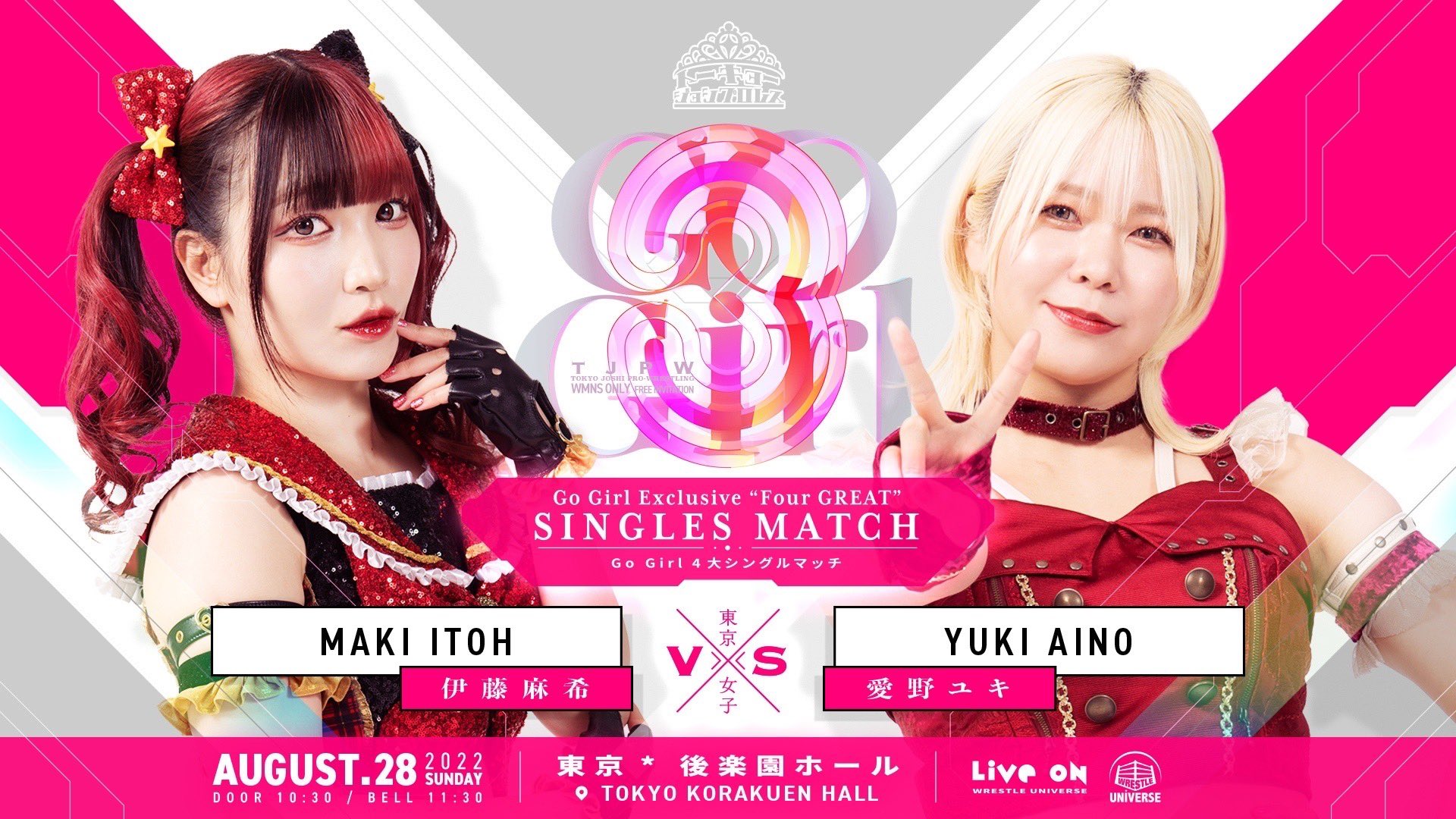 11:30より #wrestleUNIVERSE でTJPWの実況生中継!#tjpw女性限定興行 です。新ロゴの発表も見逃さないでください!