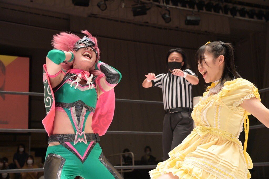 ぽむ「先輩として勝利を掴みたかったんですけど、普段いつも真面目にプロレスしてるのに、周りに女の子がいてかわいくて、調子乗っちゃったかも」