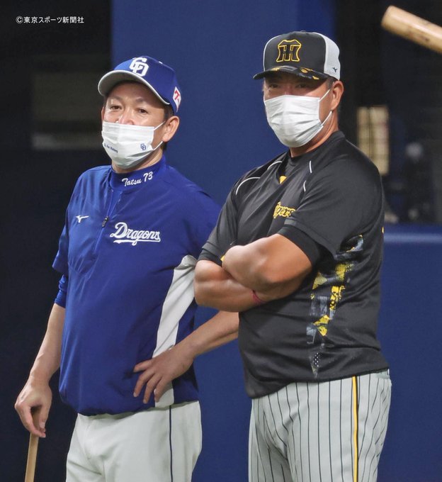 阪神 #井上一樹 ヘッドコーチと話し込む #立浪和義 監督