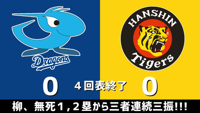 4回表終了 柳、無死1,2塁から三者連続三振!!!