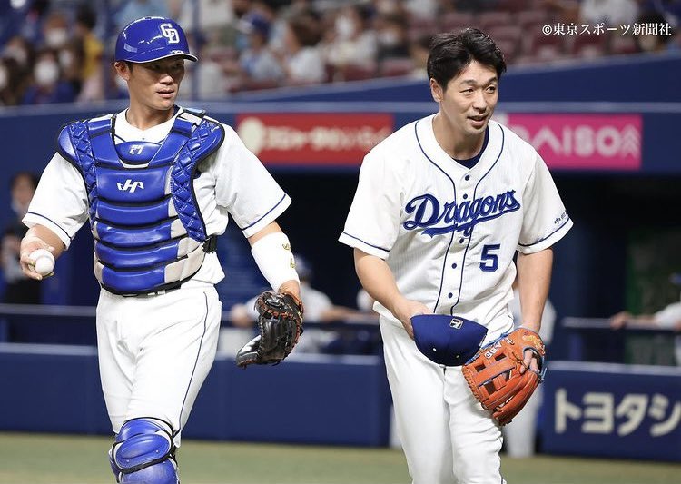 中日・岡林勇希「僕が1番の時は後ろに大島さんがいるだけで安心感がある。2番だと前にいて勉強する部分がある。近くに大島さんがいてくれて助けてもらっている」 大島洋平「まだまだじゃないですか。頑張ってはいるけど(嬉しそうな顔で)」 - ドラ要素@のもとけ dnomotoke.com/archives/20220… #dragons