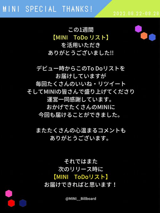 TODOリストは【M期】は最後となりますが、長くINIが愛されるようにこれからも一緒に楽しく活動しましょう!