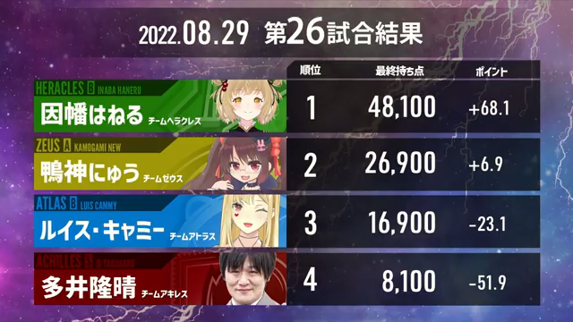 本日はヘラクレスの日! #因幡はねる 選手が意地の2連勝で個人最下位から脱出、トップ条件で地上まで見えてきた!
