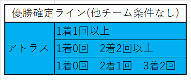 他チーム条件が無いのはアトラス。優勝マジックが点灯している状況です。
