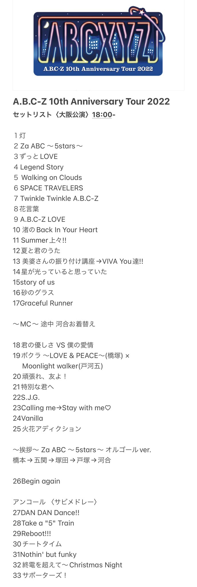 #ABCXYZ 大阪公演 セットリスト