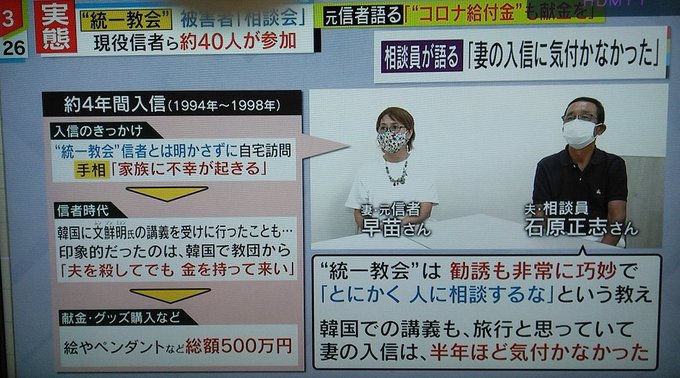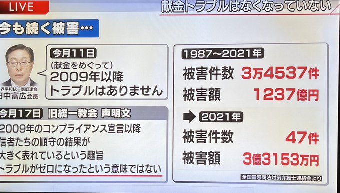 これでも宗教法人格を保たせる国ってもはや法治国家じゃないよね。国民を守る気がない。 #旧統一教会問題 #旧統一教会 #旧統一教会 #ミヤネ屋がんばれ pic.twitter.com/xK6XMzIPTb