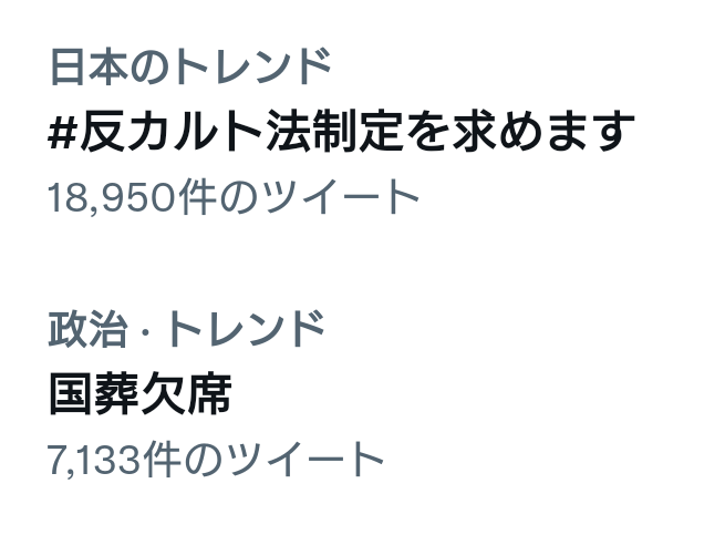 このトレンドは体張って奮闘してる紀藤弁護士たち、そして勇気出して証言してる多くの元信者さんたちを決して孤立させず、「世の中全体で応援してるよ」ってメッセージになると思うので、明日も継続して盛り上がるといいなと思います。皆さん、どうぞよろしくお願いします