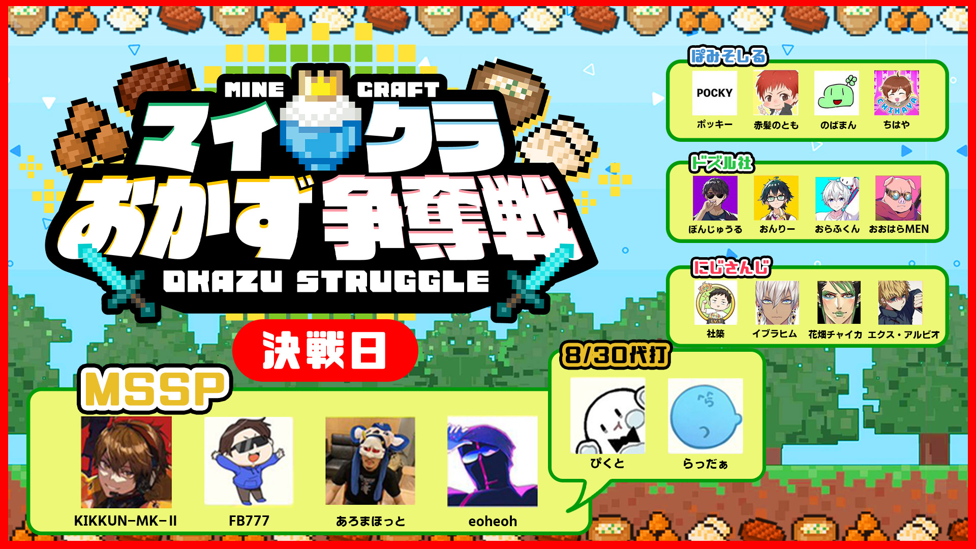 本日20時からついに #マイクラおかず争奪戦 決戦日開始でゴザル!果たしてMSSPのからあげチームは勝利できるのか!?