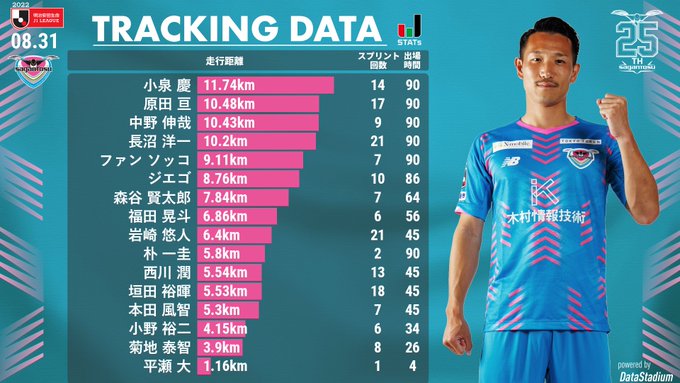 👑本日の川崎F戦のトラッキングデータランキング