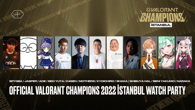 「VALORANT Champions 2022」WATCH PARTYの参加者が発表。関優太、SHAKA、SPYGEA、恭一郎ら10名がミラー配信を実施