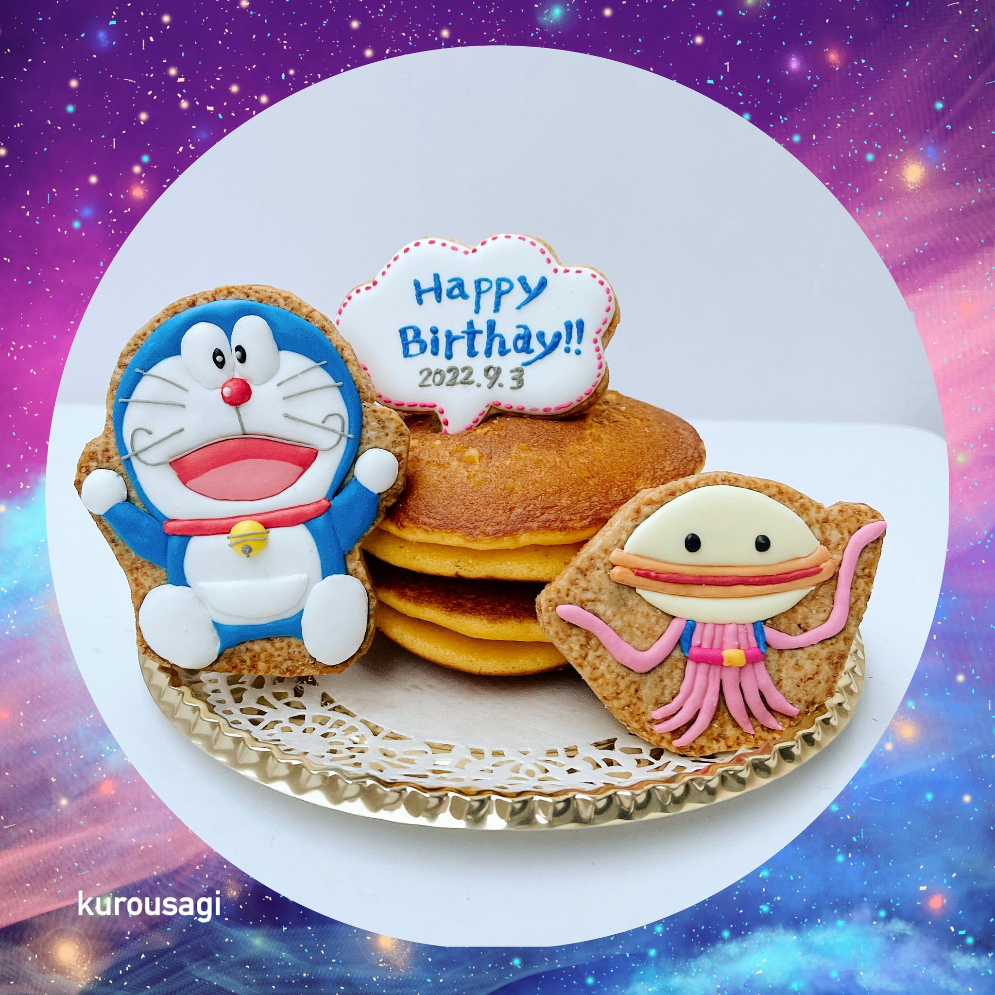 ドラヤキ星人クッキーとお祝い🎉Birthdayのdが抜けてるー😱