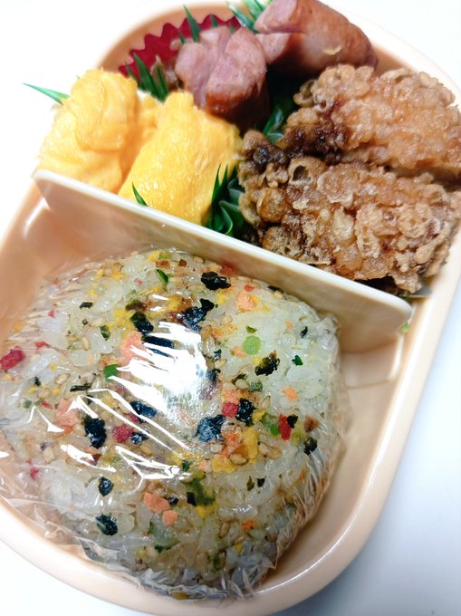 お弁当で食べるおにぎり、唐揚げ、卵焼き、ウインナーは何でこんなに美味しく感じるんでしょう😆
