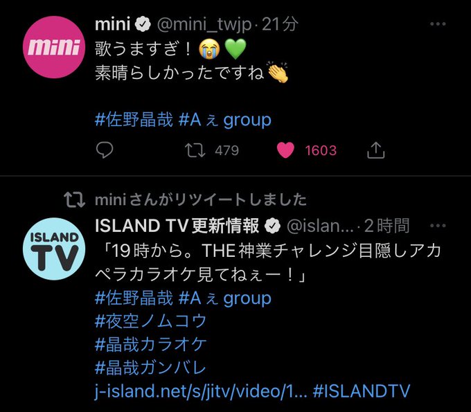mini公式が晶哉の歌にに言及した事により