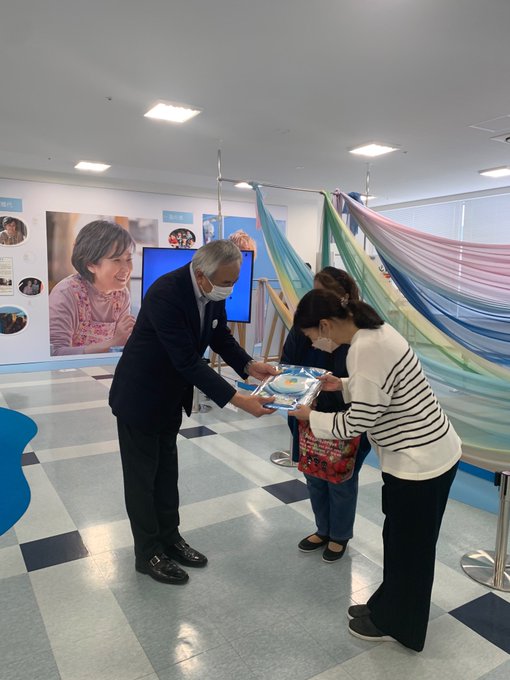 海の市2Fの「おかえりモネ展」、10万人目の入場者は静岡県からモネを求めて気仙沼と登米を旅する望月さん親子。菅波先生のファンで鎌倉殿の13人も見ているとのこと。モネ展は10月末迄、お急ぎください‼️