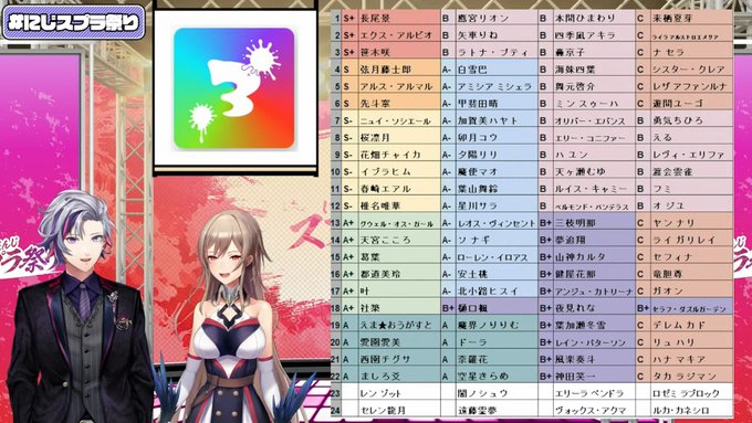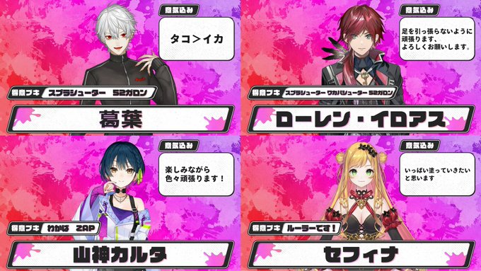 【#にじスプラ祭り 】「チーム14」天宮こころ(A+)、ソ ナギ(A-)、夢追翔(B+)、ライ ガリレイ(C)