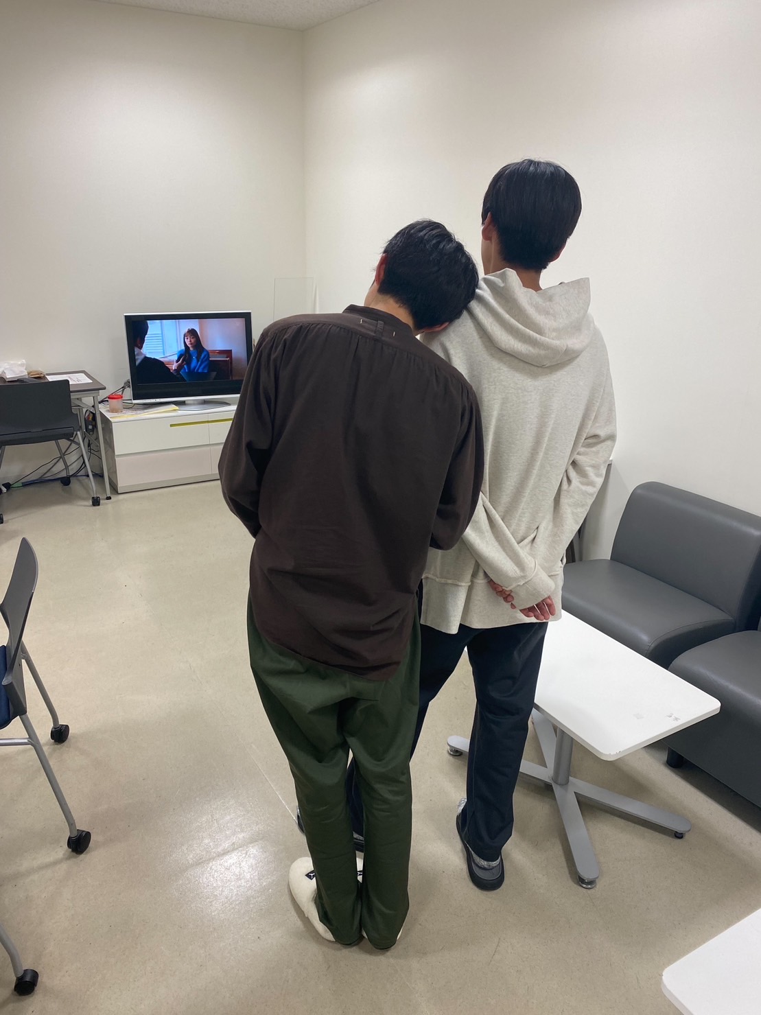 先週放送の第2話を、撮影の合間に見る #目黒蓮 さんと #鈴鹿央士 さんです。