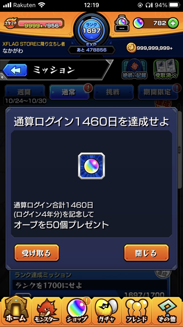 通算ログイン4年達成(モンスト歴は8年) https://t.co/OcmQBSXHYE