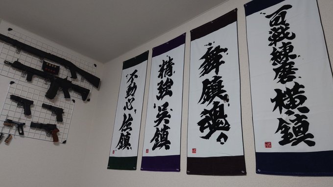 艦これ新アニメを祈念して四大鎮守府タオルを飾ったけど、思ったより幅あるし、軍国主義の人みたくなっちゃったな https://t.co/QW1rKBhPX3