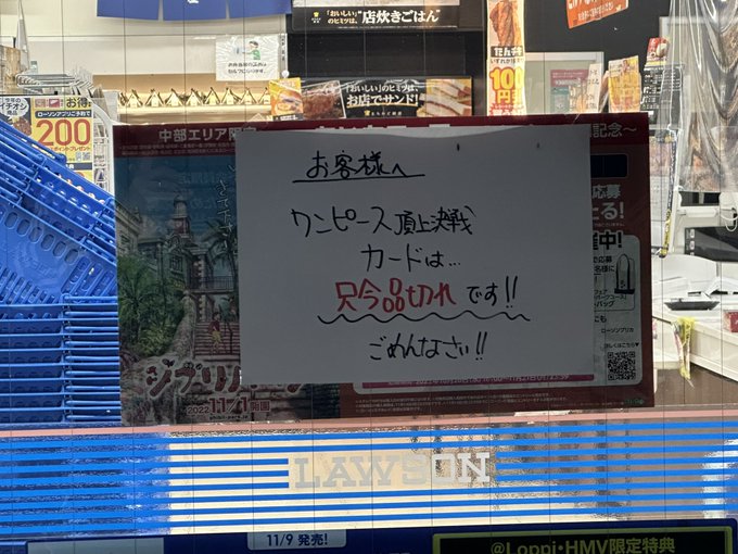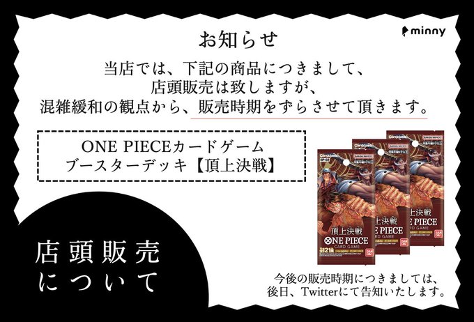 11月4日販売のワンピース頂上決戦ですが、混雑緩和等の観点から販売時期をずらしての販売とさせていただきます🙇♂️