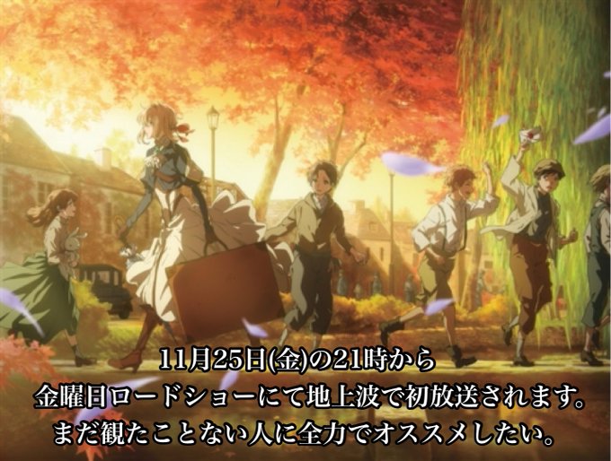 劇場版『ヴァイオレット・エヴァーガーデン』は、金曜ロードショーにて今夜9時放送‼️ https://t.co/K3kiHiDKJl