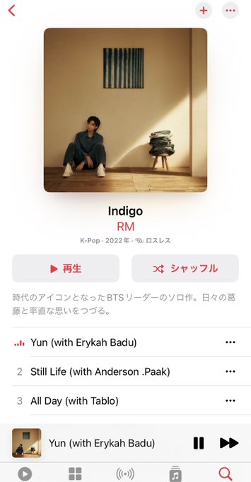 RM の1st Solo Albumリリースを控えて、現在101,539件のツイートで、🇯🇵日本のトレンドに、#IndigoByRM