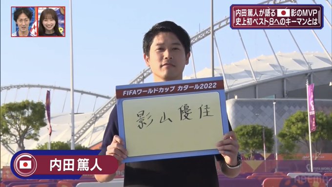 内田篤人が選ぶワールドカップ影のMVPは影山優佳 https://t.co/PZbI9omUlr