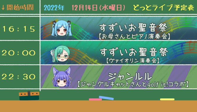 すずいお聖音祭 [2022年12月14日(水)] 2022年12月14日(水)23:00当ページのリンクには広告を含む場合があります どっとライブ予定表(非公式) @dorayoteihyou 💡修正版(追加)💡 12/14(水)#どっとライブ予定表 ・16:15~:すずいお聖音祭🍄 ・20:00~:すずいお聖音祭🍋 ・22:30~:ジャンルル🍖🐾 https://t.co/E3LuxaA3uv どっとライブ予定表(非公式) @dorayoteihyou 12/14(水)#どっとライブ予定表 ・16:15~:すずいお聖音祭🍄 ・20:00~:すずいお聖音祭🍋 https://t.co/GNgk3jKWoI ぷにょ @punyo39300 すずいお聖音祭!本日ついに開催だぁぁあ!うわぁぁぁあ!!!!! #イオリの森美術館 #すずあーと https://t.co/Cnblq2flI1 だいきち🐏 @mocomocolemon33 すずいお聖音祭、たのしみ https://t.co/YH2Rl4KOzS コメント名前 コメント 投稿する