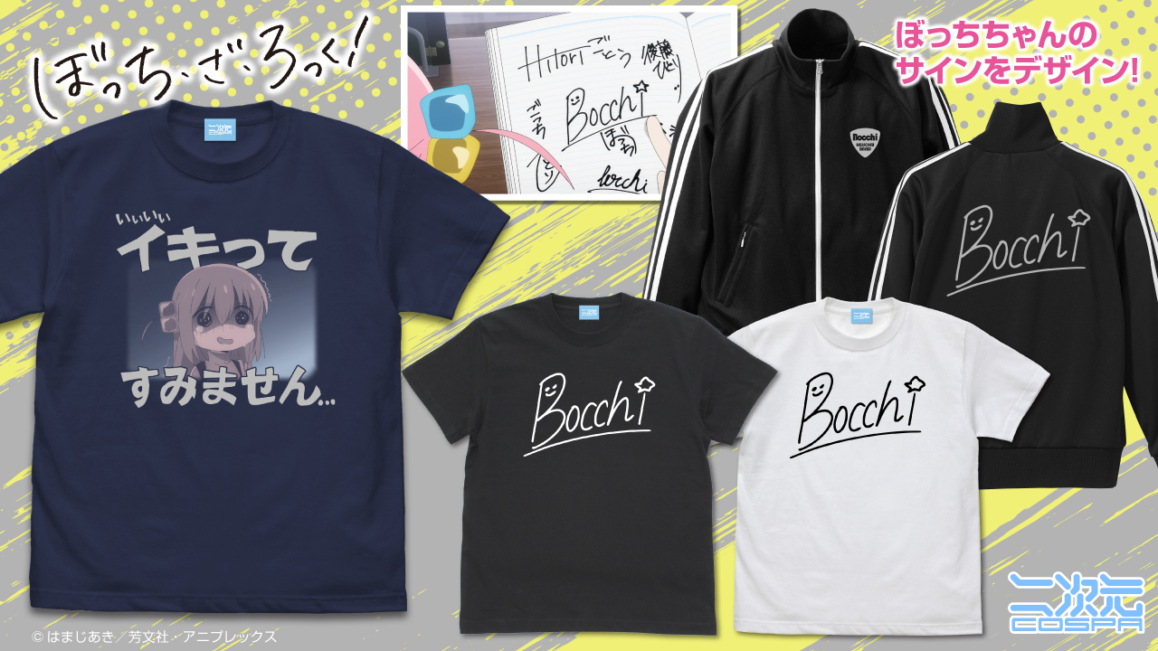 ぼっちちゃんの「いいいいイキってすみません…」Tシャツ、ぼっちちゃんのサインをデザインしたTシャツ、ジャージが登場!